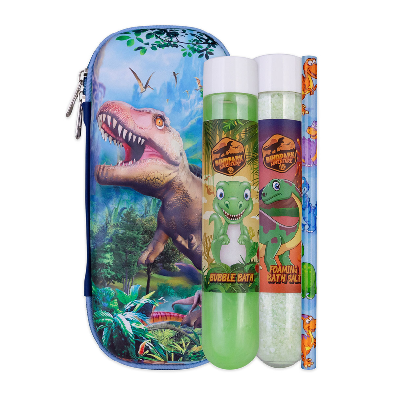 Gift set σε κασετίνα με 60ml αφρόλουτρο, μολύβι, 80g bath salt, Dinopark
