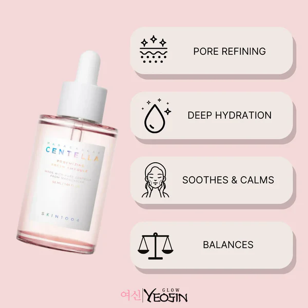 Η Αμπούλα SKIN1004 Madagascar Centella Poremizing Fresh είναι κατασκευασμένη με Centella Μαδαγασκάρης και Ροζ Άλατα Ιμαλαΐων, τα οποία συνεργάζονται για να ελαχιστοποιήσουν τη λιπαρότητα και να καθαρίσουν τους πόρους.Συσφίγγει τους διευρυμένους πόρους στο δέρμα για να μειώσει την εμφάνιση και το μέγεθός τους, γεγονός που δημιουργεί υγιές δέρμα με νεανική όψη. Αυτή η ελαφριά αμπούλα βοηθά στην ενυδάτωση του δέρματος χωρίς να αφήνει κολλώδη υπολείμματα, διατηρώντας το δέρμα ενυδατωμένο και αναζωογονημένο με ματ φινίρισμα.Στοχεύει: Λιπαρότητα, Σμήγμα, Πόροι, ΕνυδάτωσηΚατάλληλο για: Λιπαρό , Μικτό Δέρμα