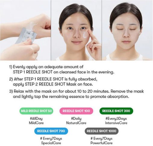 - Βήμα 1: Το Reedle Shot 300 χρησιμοποιεί μικροτεχνολογία για να τονώσει απαλά το δέρμα, προάγοντας την παραγωγή κολλαγόνου, ελαχιστοποιώντας τους πόρους και δημιουργώντας μια πιο λεία υφή.